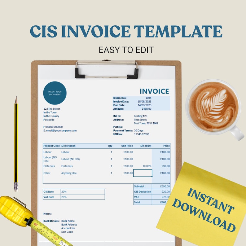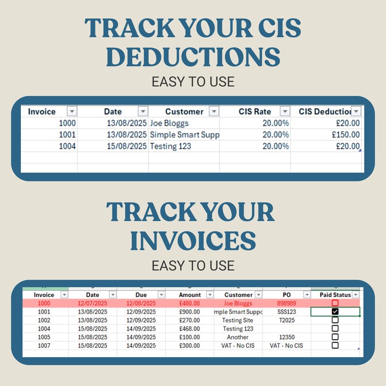 Excel Invoice Template UK VAT / CIS Ready Invoice Payment Tracker