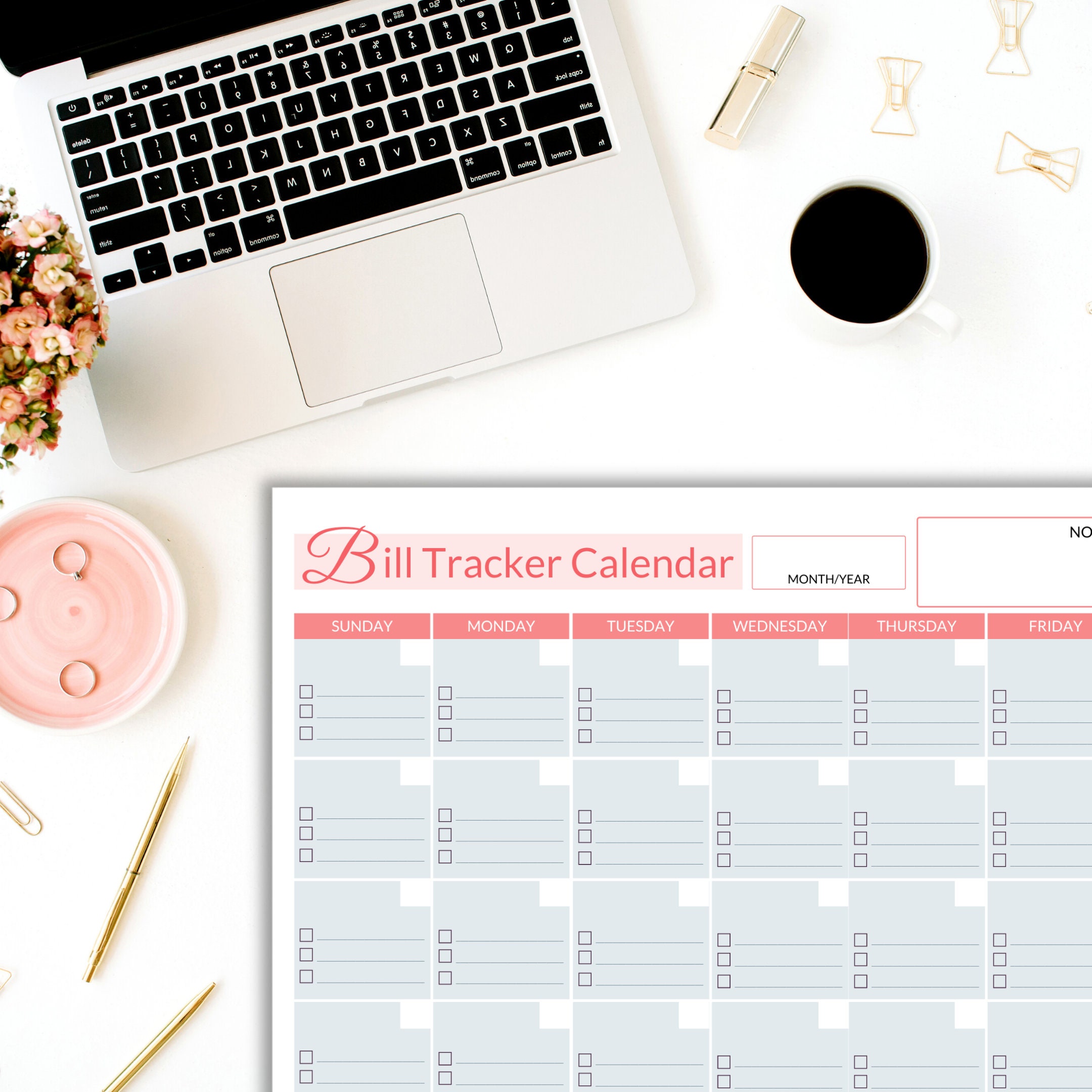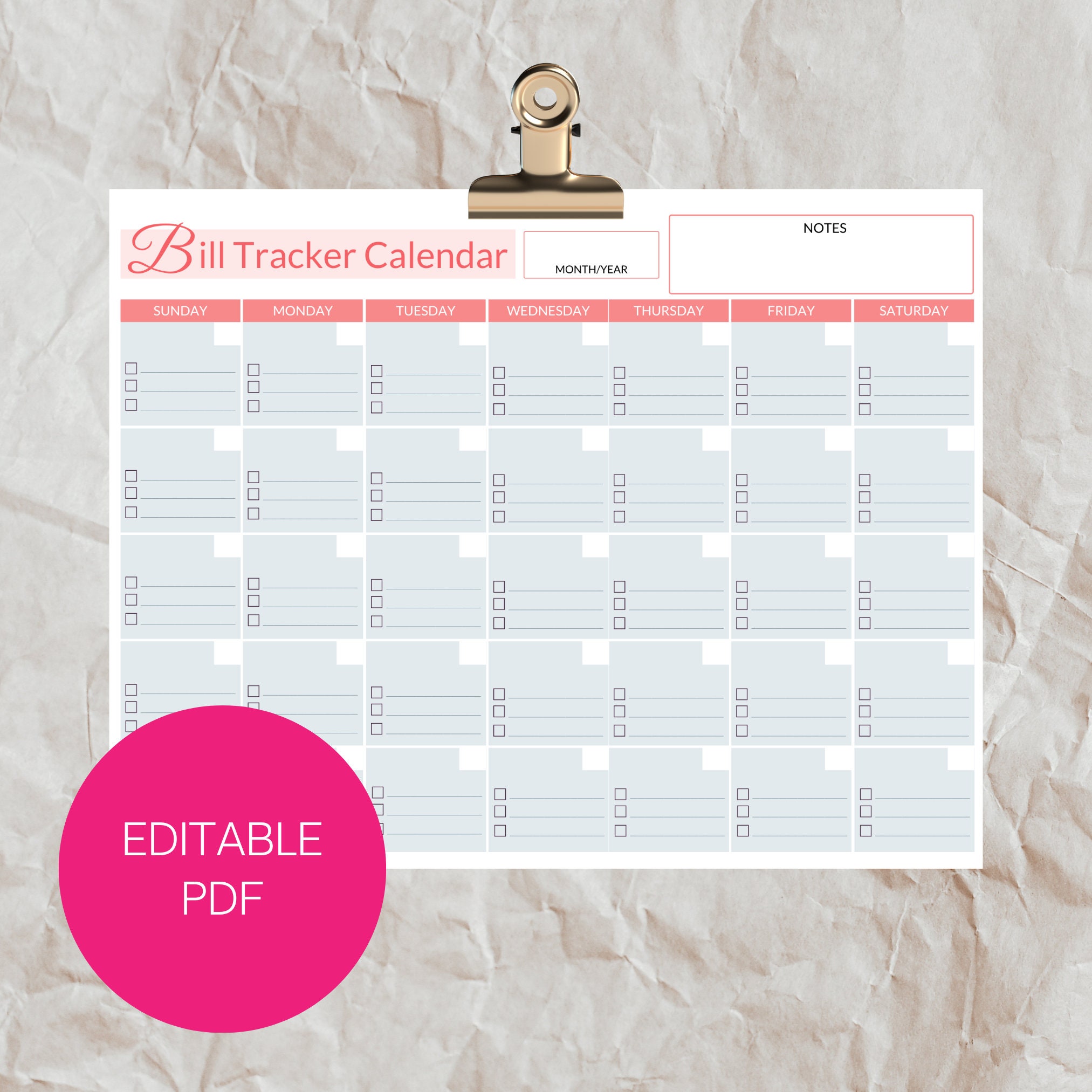 Editable Bill Payment Tracker Calendar: Printable Monthly Bill