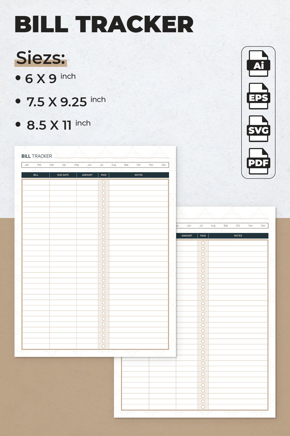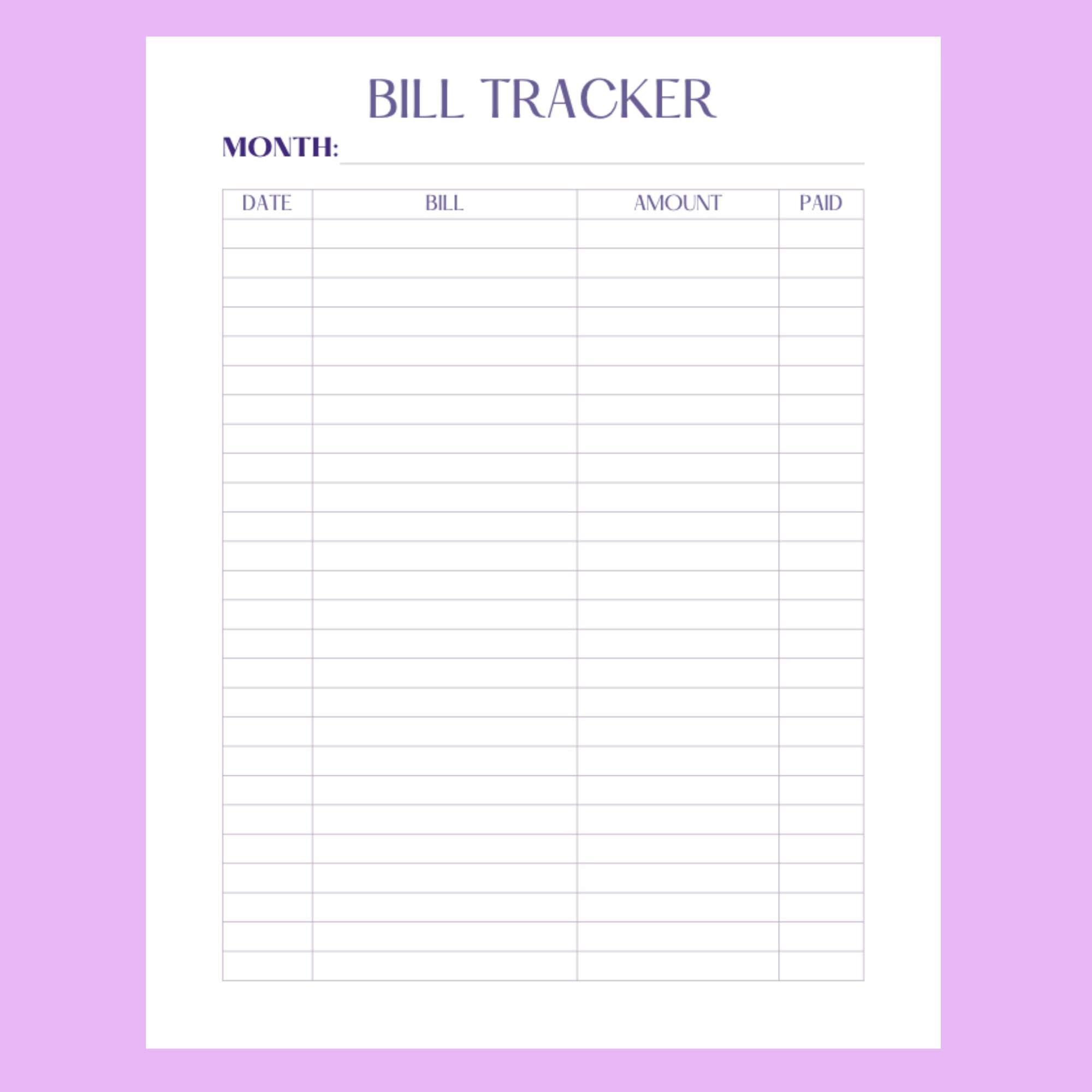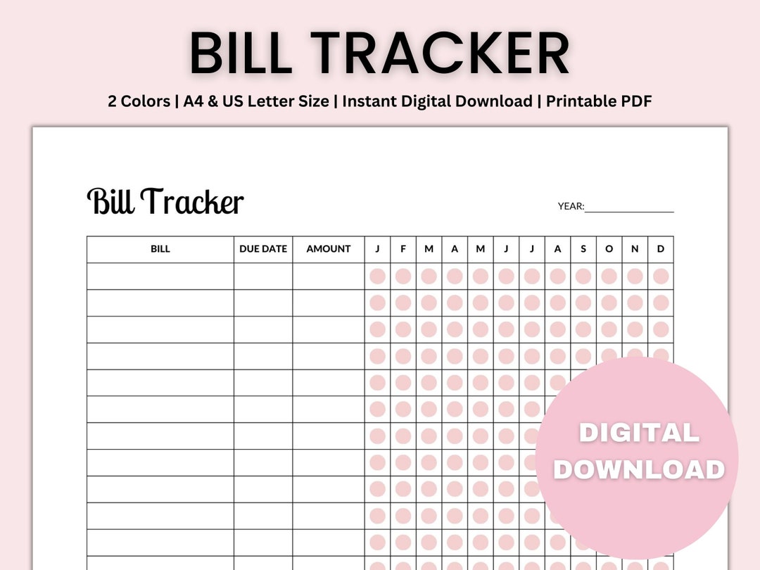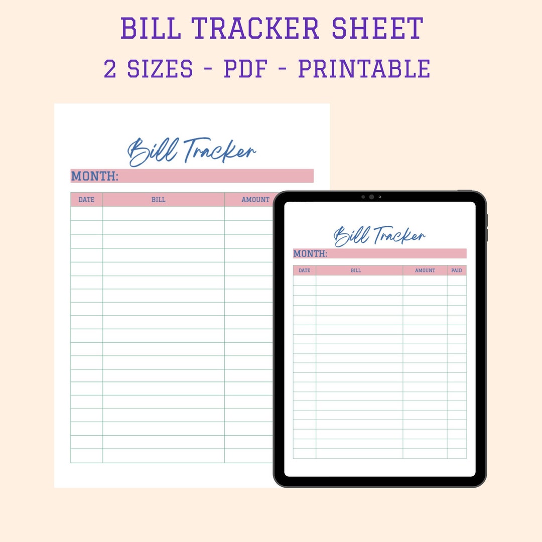Bill Tracker Template Editable Instant Download Fillable PDF A4 and