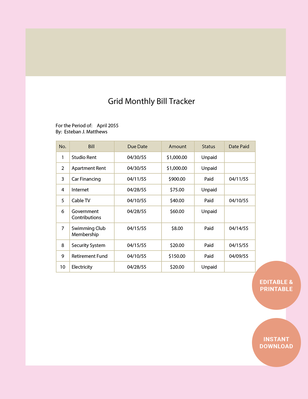 Here are some of the images for Bill Tracker Template Free that we found in our website database.