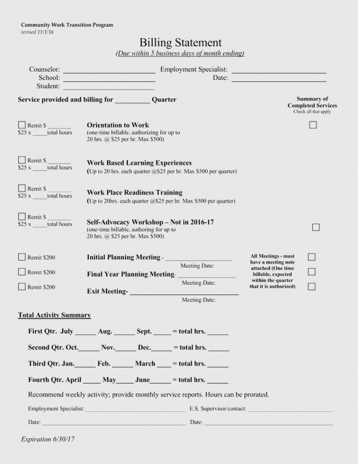 Blank Billing Statements Free Printables