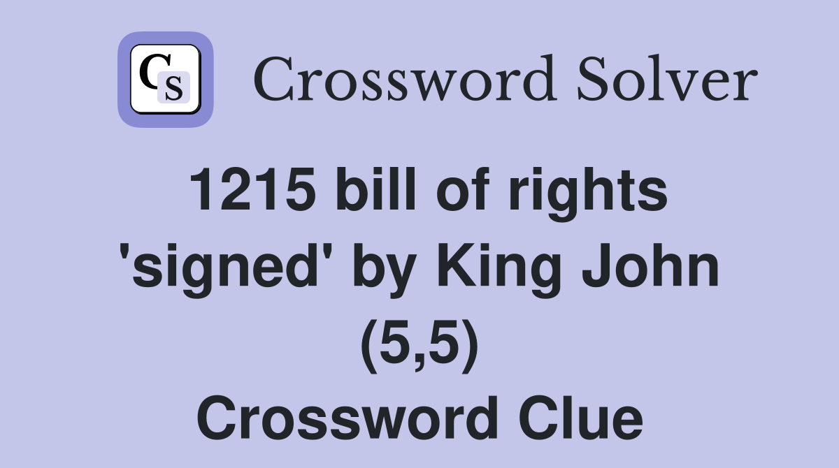 1215 bill of rights signed by King John (5 5) Crossword Clue