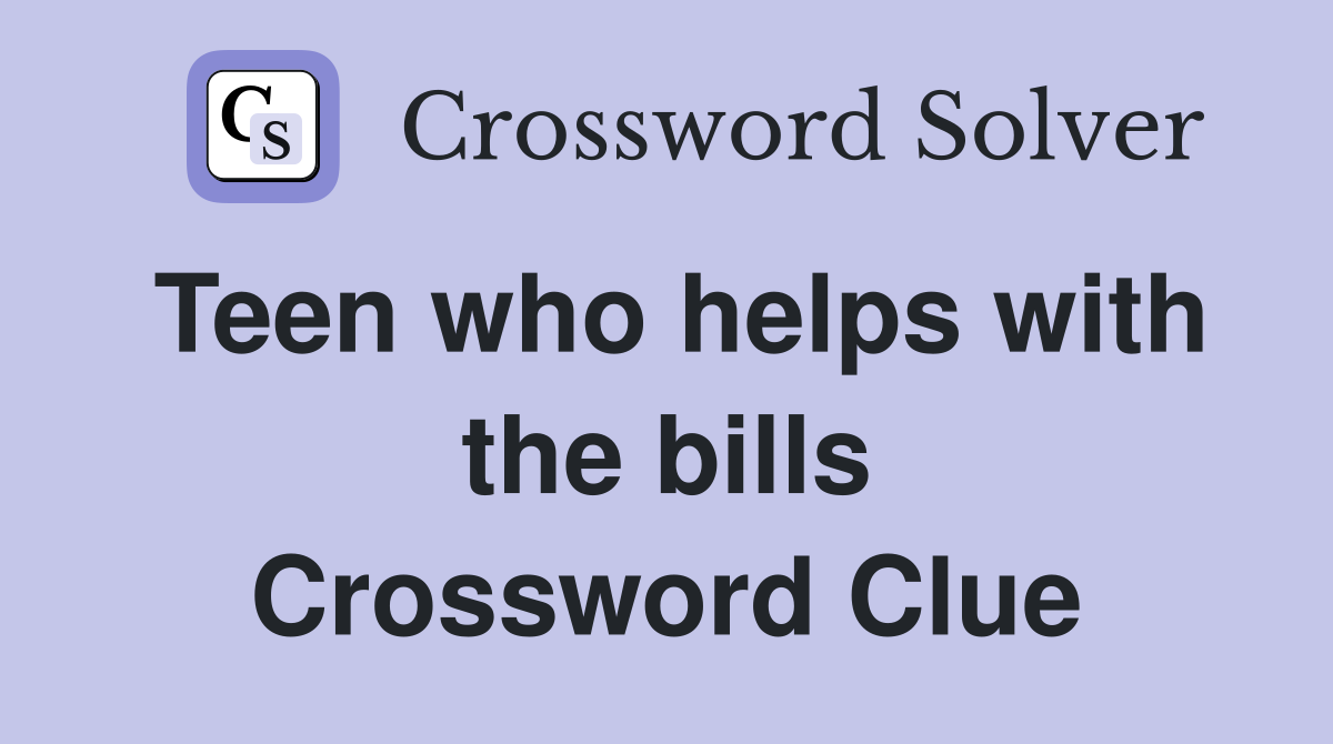 Teen who helps with the bills Crossword Clue Answers Crossword Solver