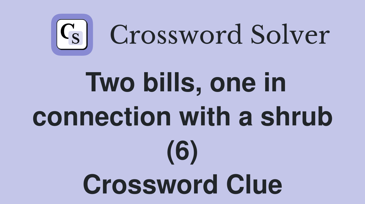 Two bills one in connection with a shrub (6) Crossword Clue Answers