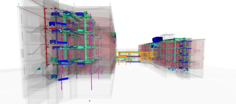 Conceptual visualization of the BIM model supporting frame and HVAC