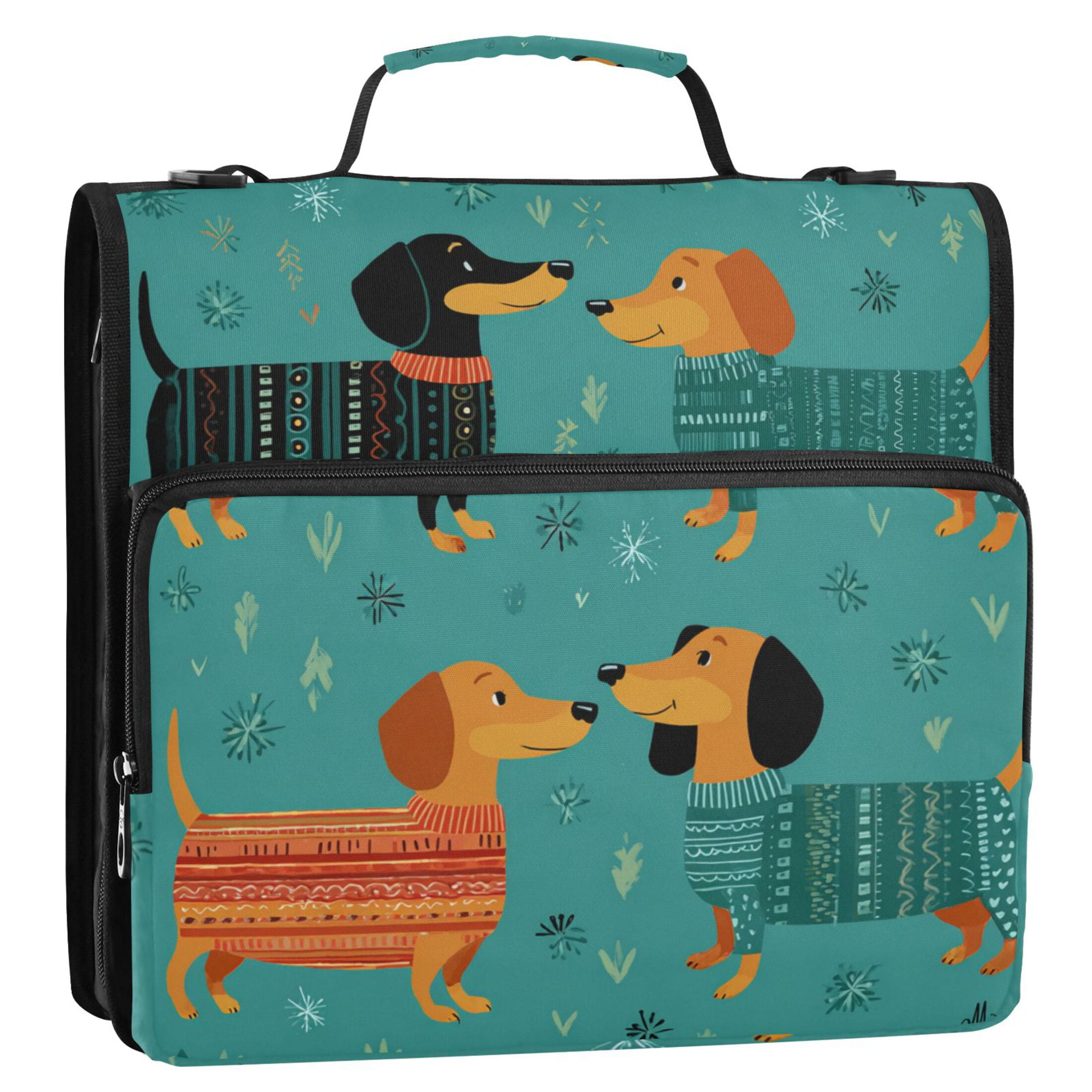 Cartoon Dachshund with Sweaters Binder Bag with Shoulder Strap 3 Ring