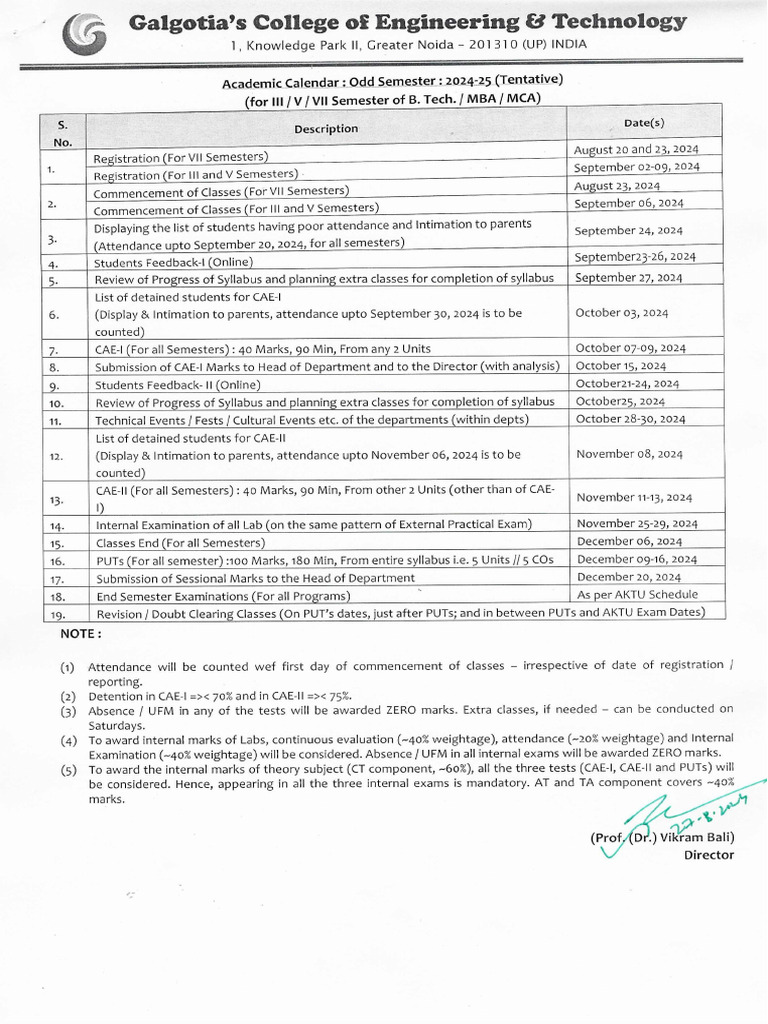 Aktu Academic Calender 2024 25 PDF