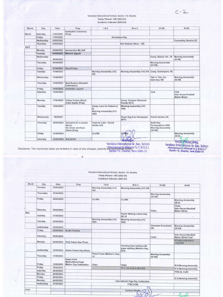Academic Calender CAV Senior Secondary School