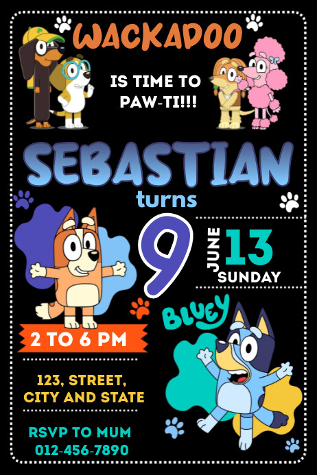 Bluey Invite Template Social Media Template