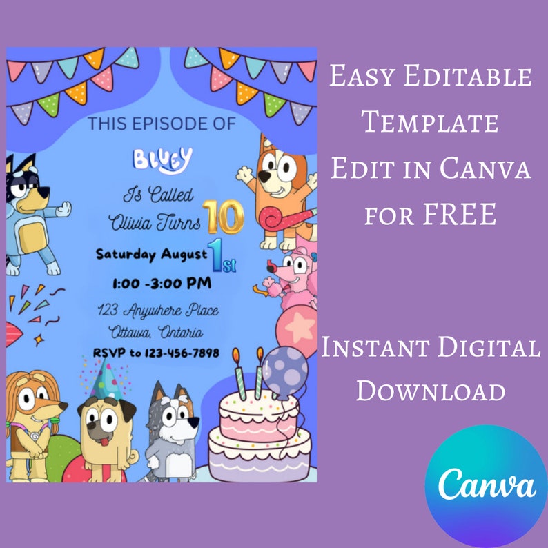Bluey Birthday Invitation Boy Bluey Digital Invite Canva Bluey and