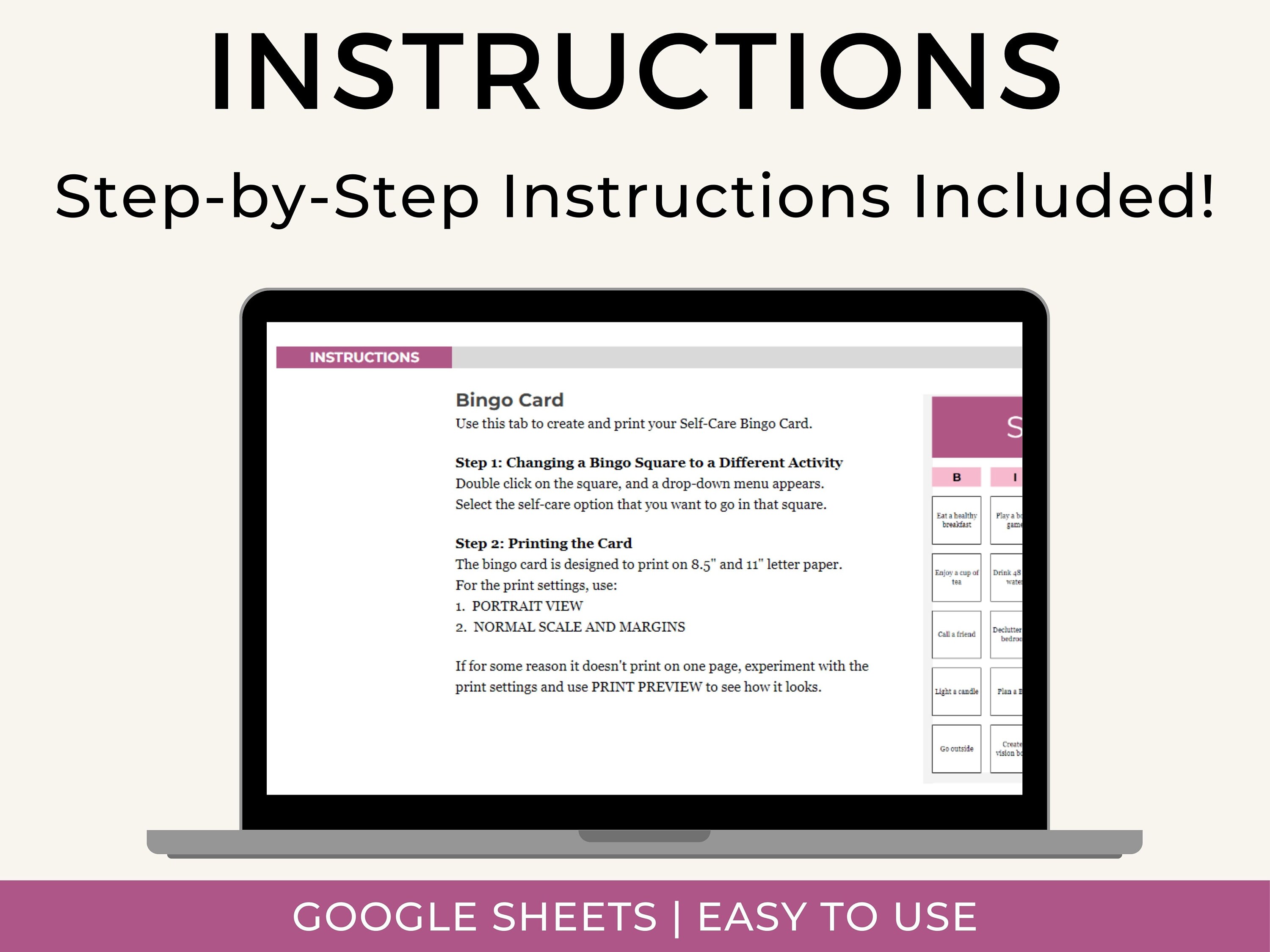 Self care Bingo Google Sheets Spreadsheet Template Etsy