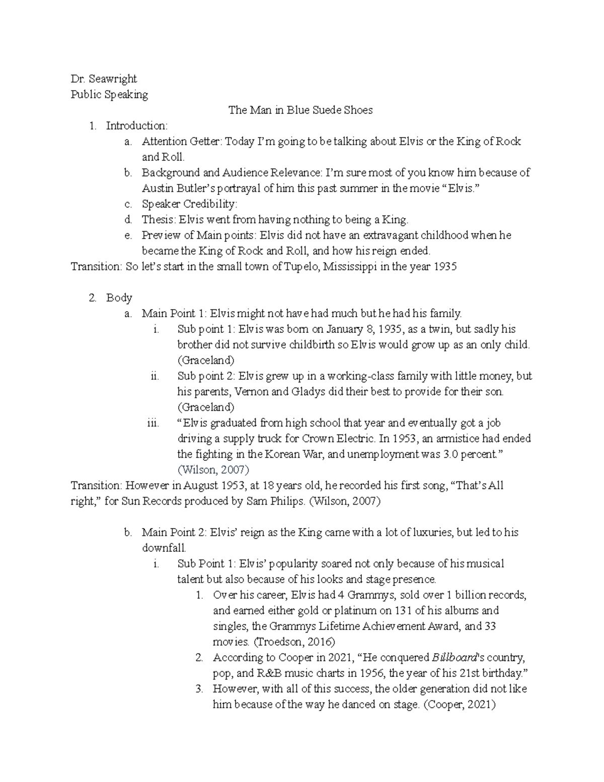 Biographical Speech Outline Dr Seawright Public Speaking The Man in