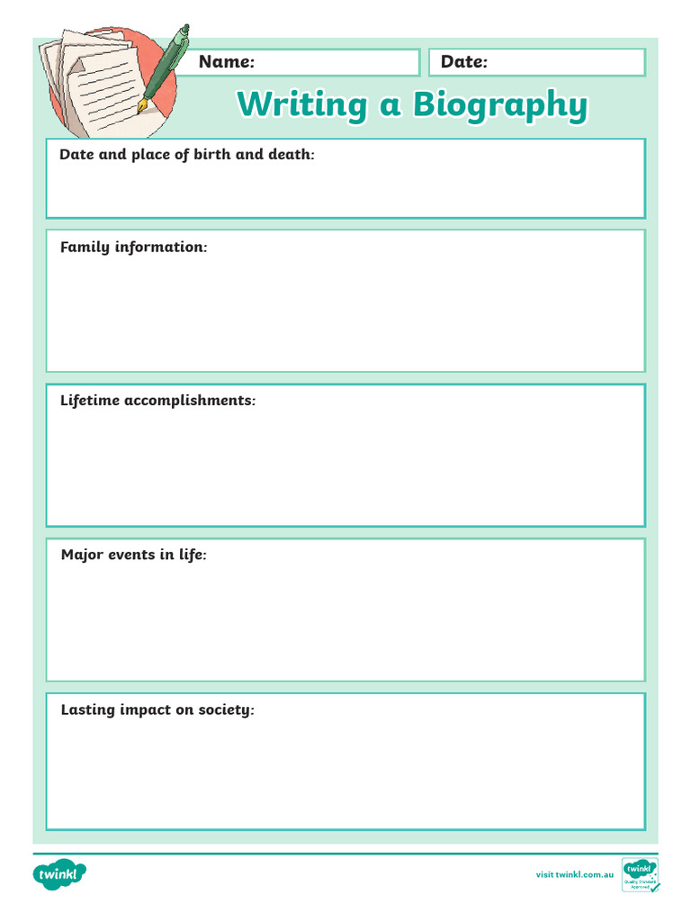 5 Paragraph Biography Writing Template/Biography/ELA/History