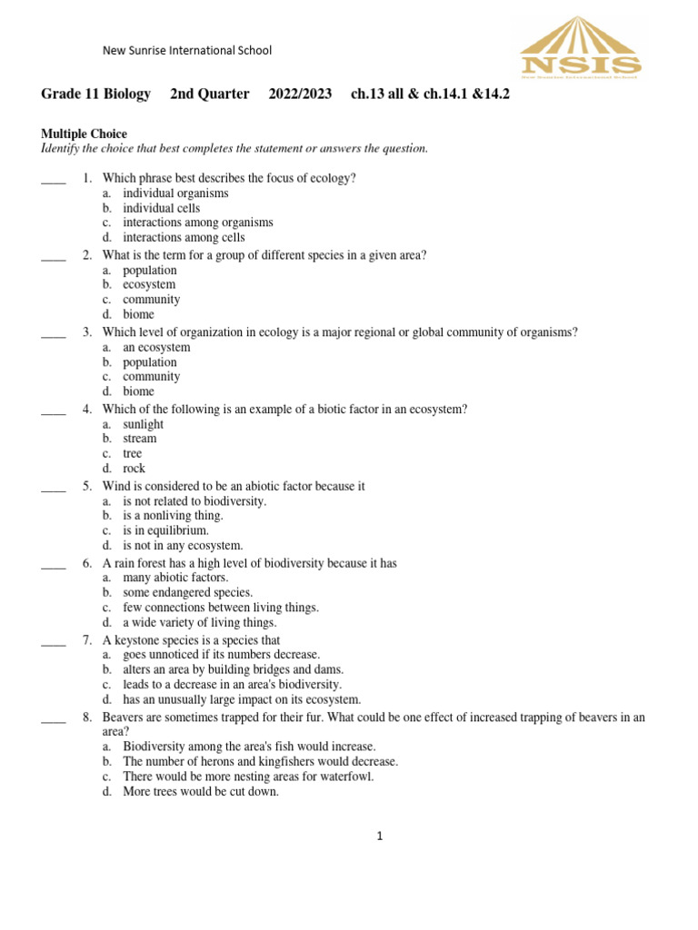 Biology Worksheet One For Grade 11 dox PDF PDF