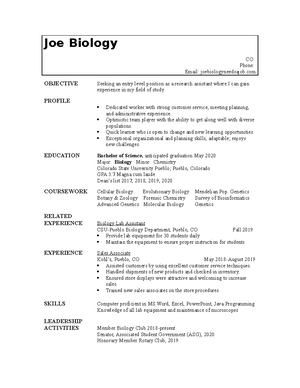 What is Biology Resume Template Joe Biology CO Phone: Email