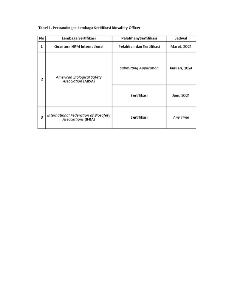 Perbandingan Lembaga Sertifikasi Biosafety Officer PDF