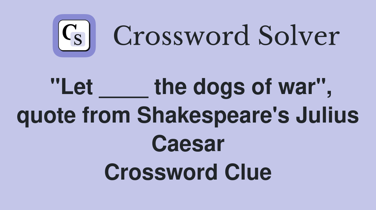 quot Let the dogs of war quot quote from Shakespeare #39 s Julius Caesar