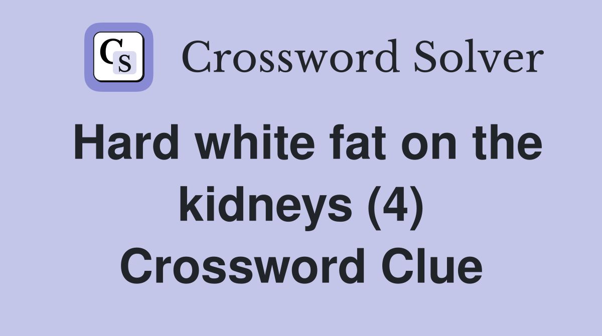 Hard white fat on the kidneys (4) Crossword Clue Answers Crossword