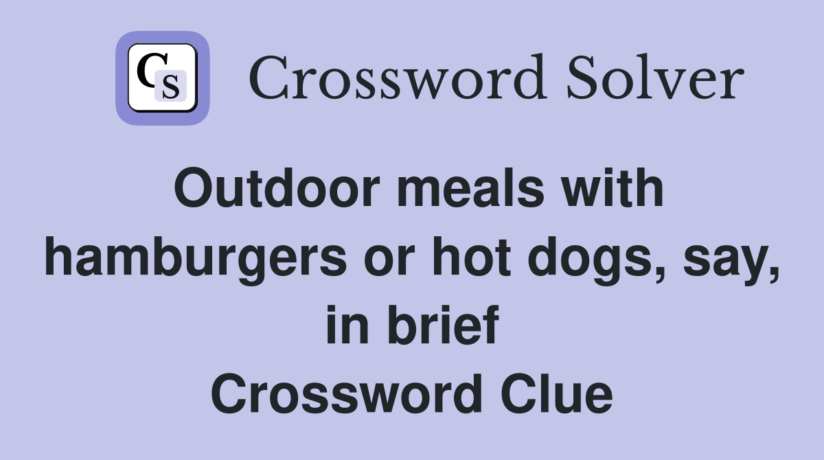 Outdoor meals with hamburgers or hot dogs say in brief Crossword