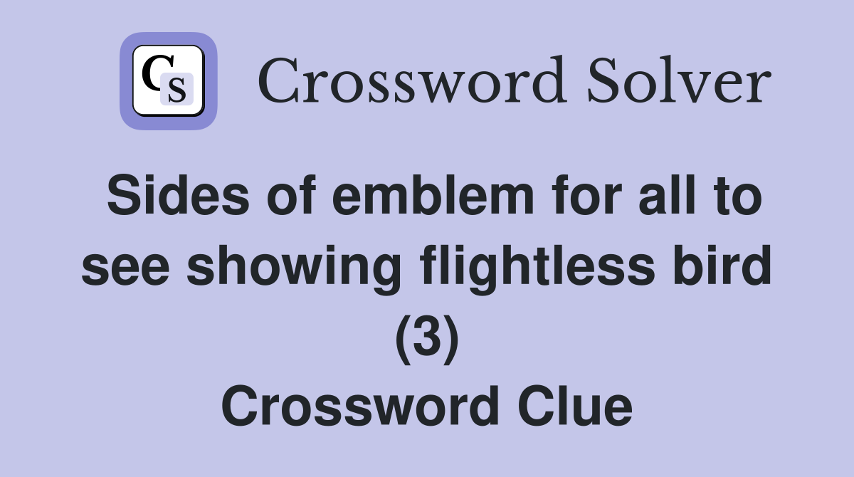 Sides of emblem for all to see showing flightless bird (3) Crossword