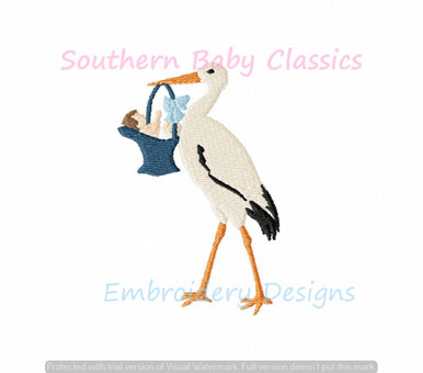 Stork Baby Boy Fill Machine Embroidery Design New Baby Shower Bird