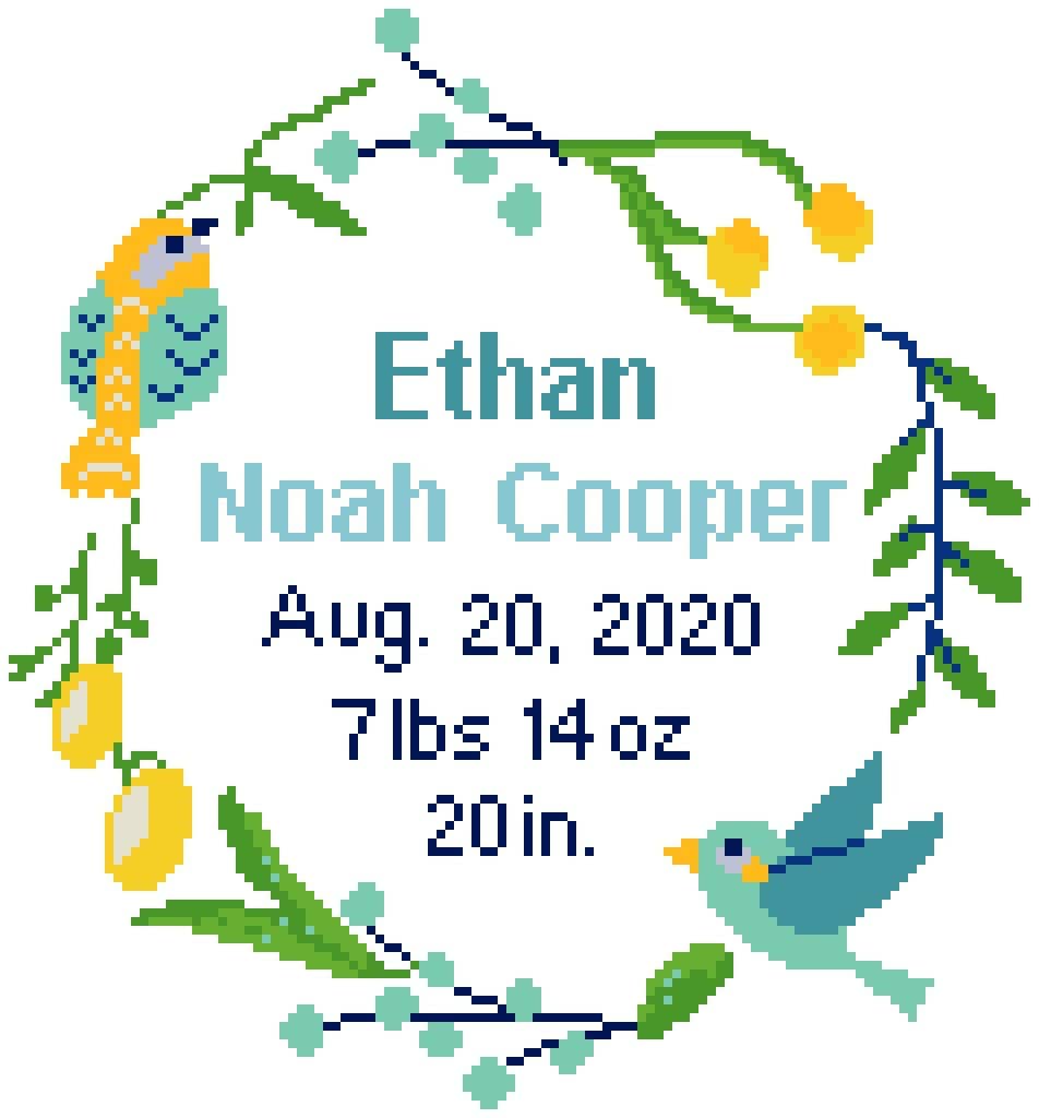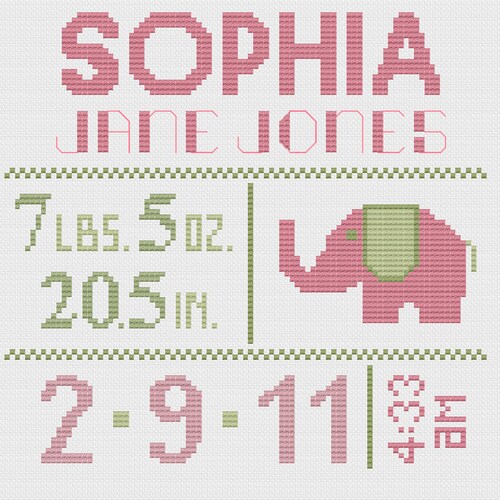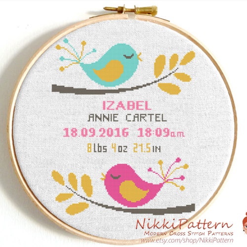 Modern Bird Birth Announcement Cross Stitch Pattern Baby Etsy