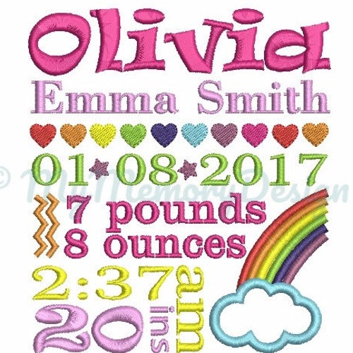 Bird Birth Announcement Embroidery Design Birth Template Etsy