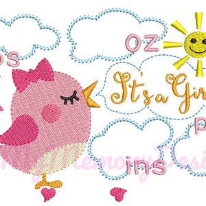 Bird Birth Announcement Embroidery Design Birth Template Machine