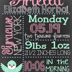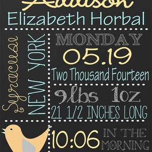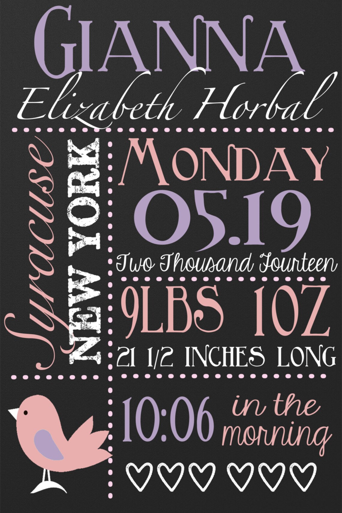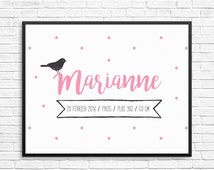 Birth announcement wall art Bird Birth announcement wall art Birth