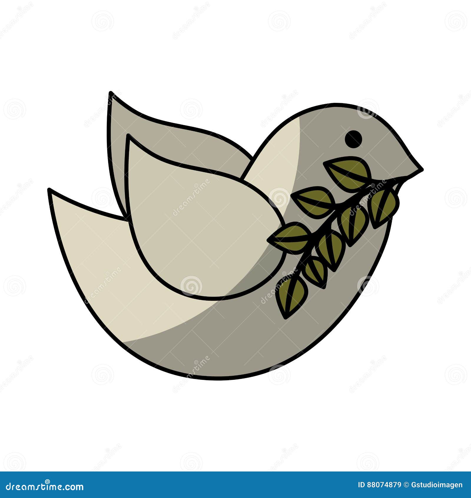 Cute Bird with Olive Branch Isolated Icon Stock Vector Illustration