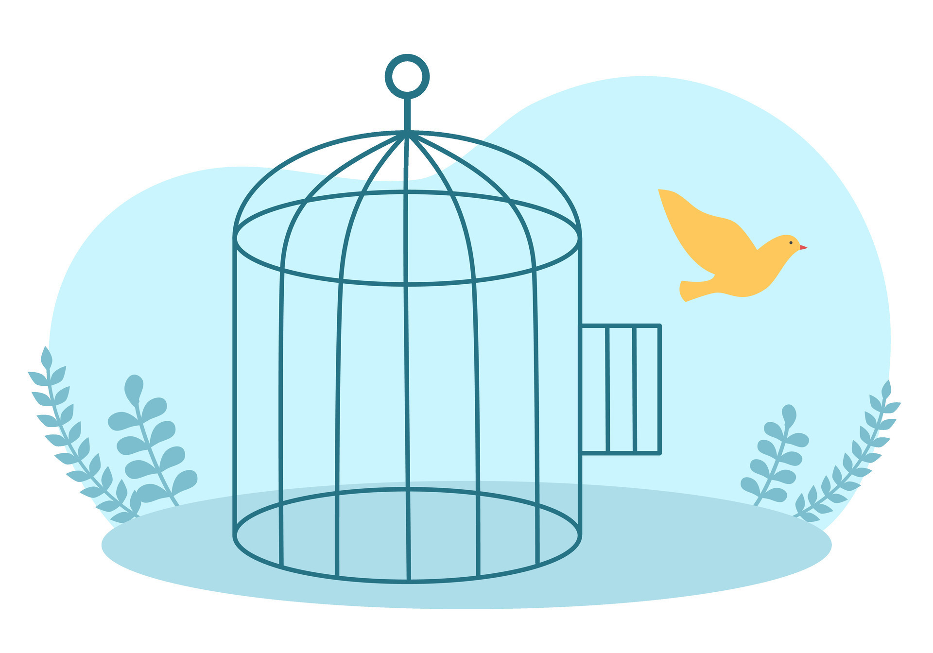 Bird flying from the cage in flat design Birdcage freedom 25677805