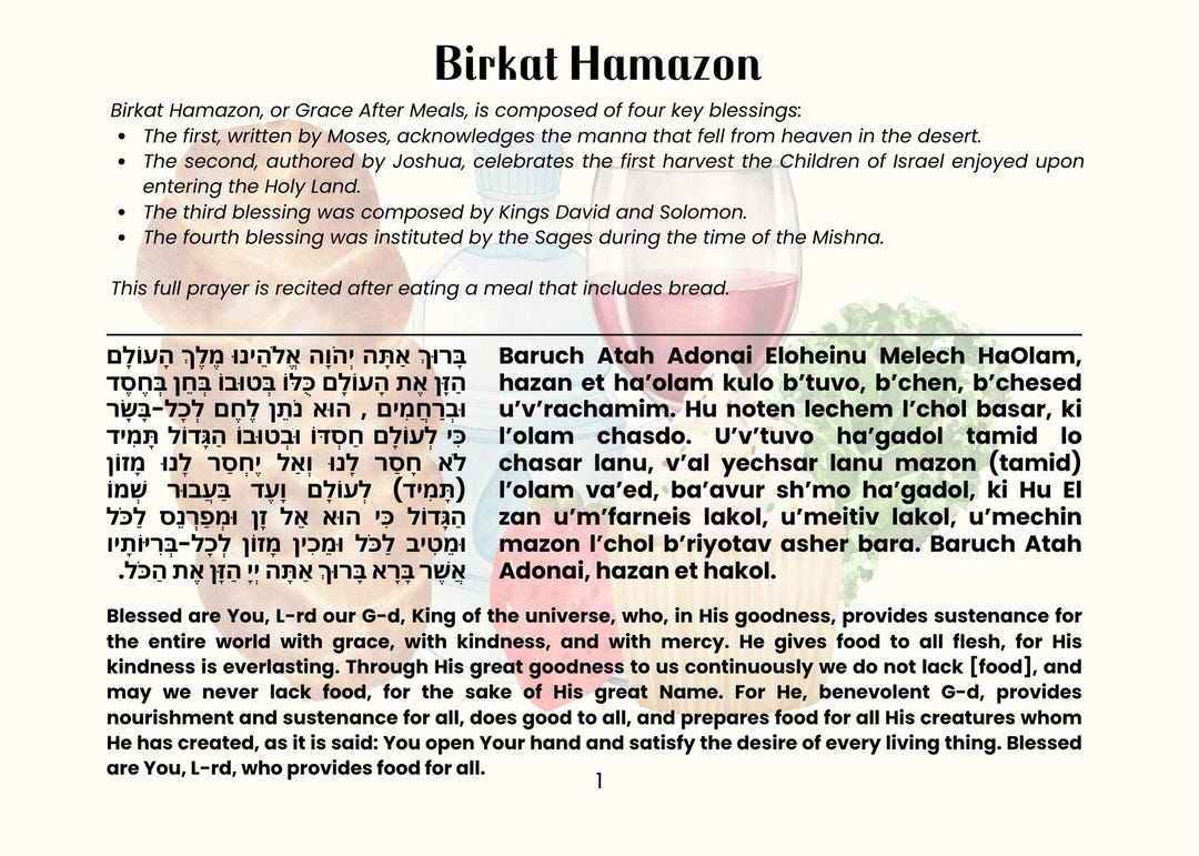 Hebrew Food Blessings Birkat Hamazon (Grace After Meals): How To Say