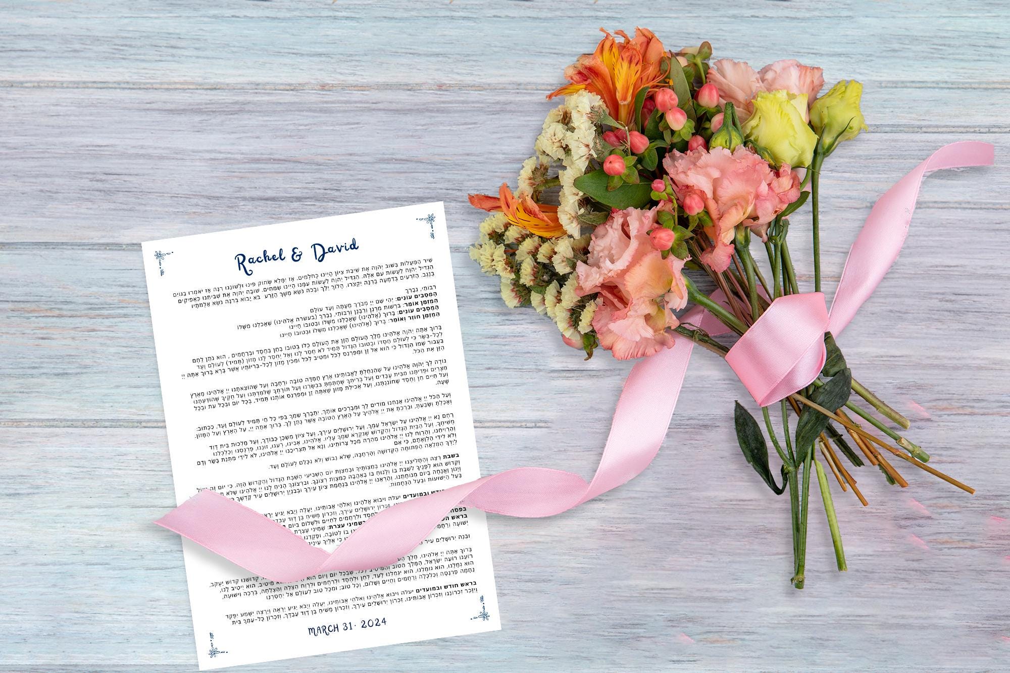 Personalized Event Birkat Hamazon Customizable Wedding Bencher W/sheva