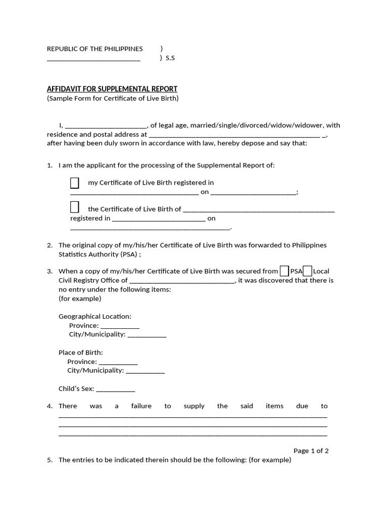 Sample Affidavit For Supplemental Report CERTIFICATE OF LIVE BIRTH