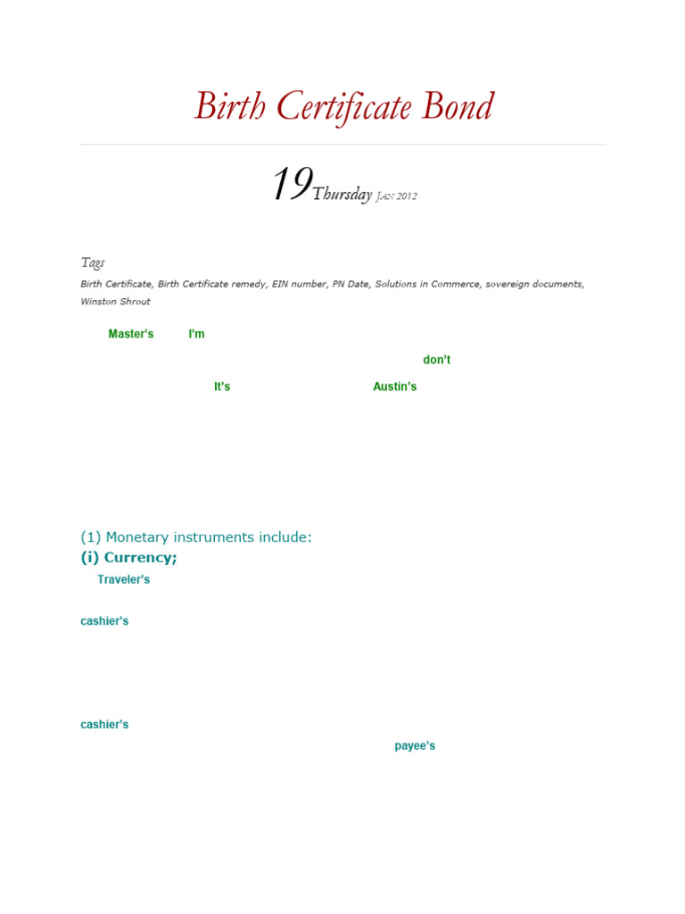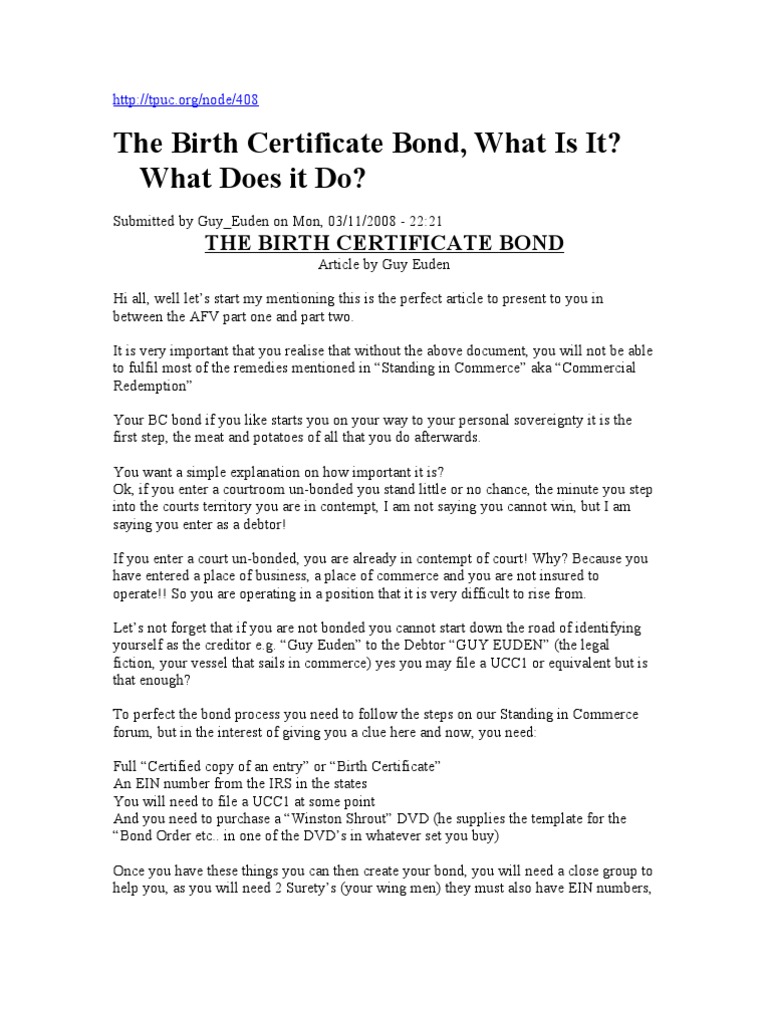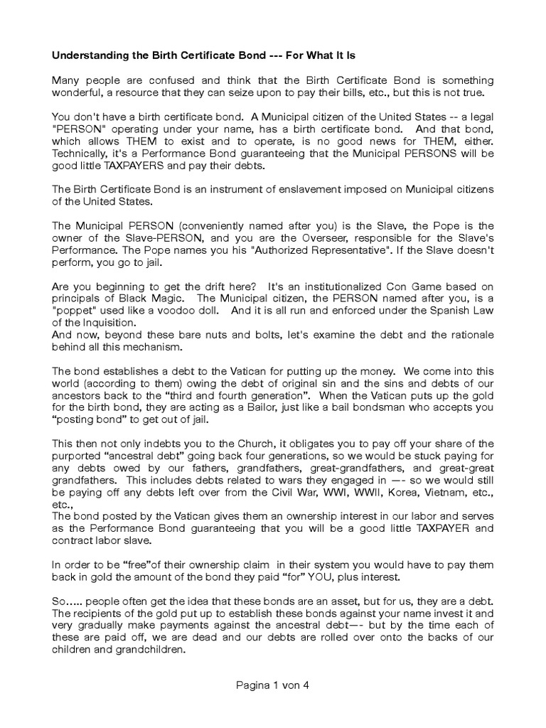 Understanding The Birth Certificate Bond For What It Is PDF Debt
