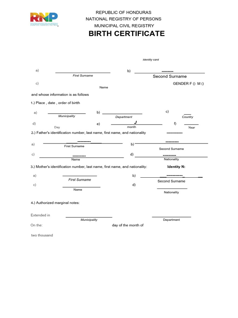 Honduras birth certificate Resourcery