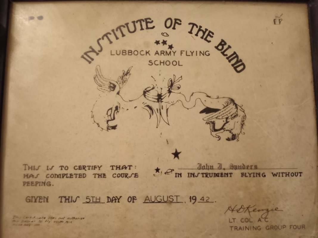 Lubbock AF School quot Institute of the Blind quot Certificate EPHEMERA