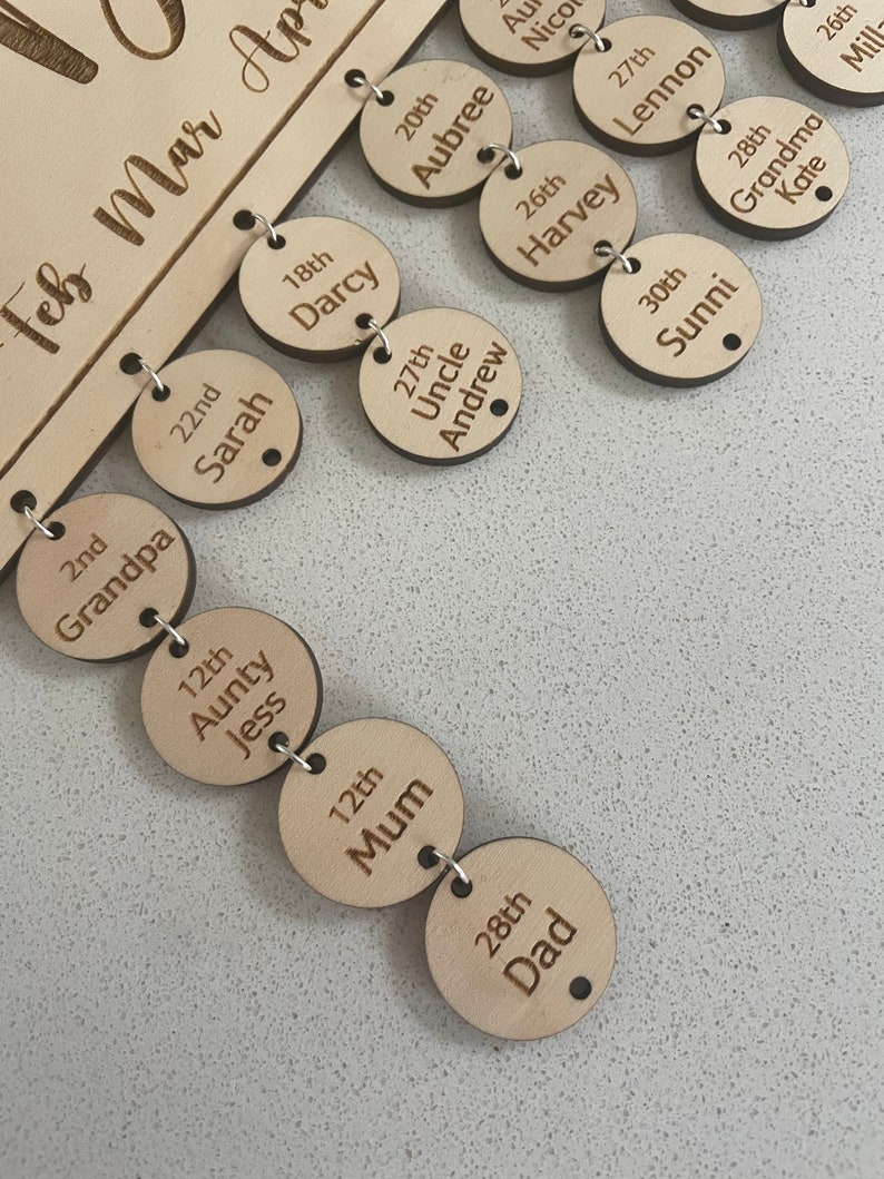 Birthday Calendar Wall Hanging Studio 26 Laser Designs
