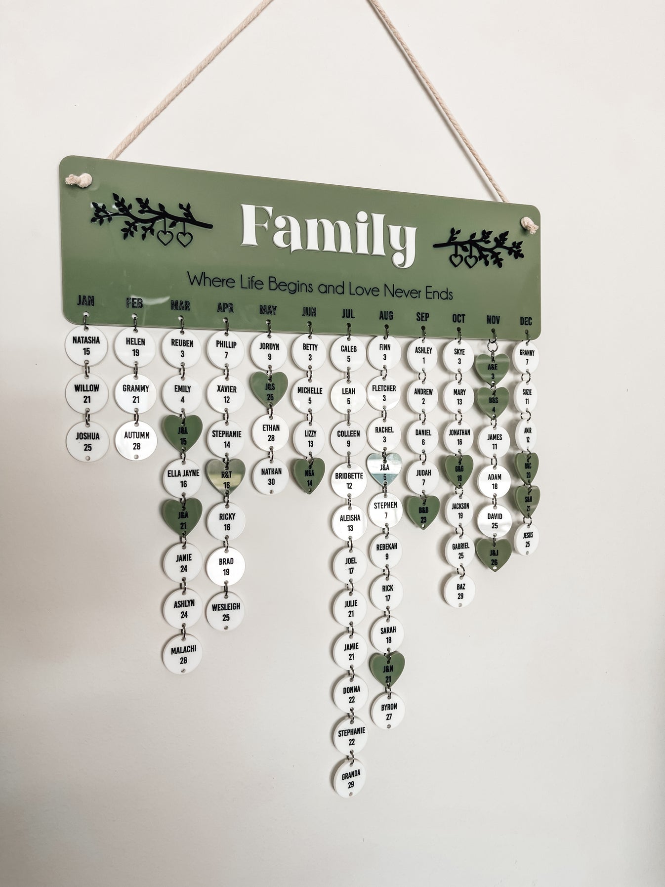 Birthday Calendar Wall Hanging Family Sign Family Birthday Calendar