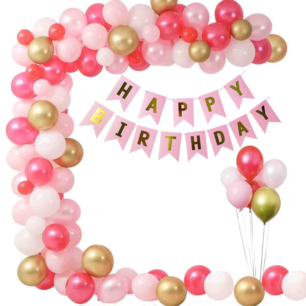Party Propz Happy Birthday Decoration for Girls 34 Pcs Pink and