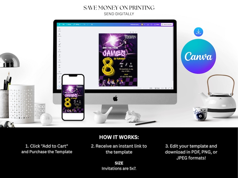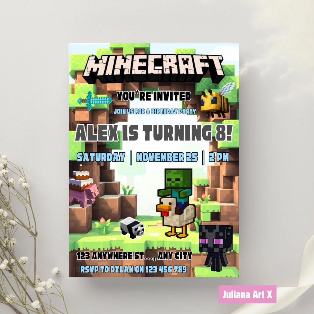 Minecraft Birthday Invitation Editable Party Invite Printable Boys