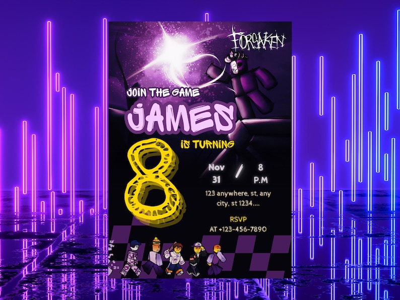 Roblox Forsaken Birthday Invitation Card Printable Editable Template