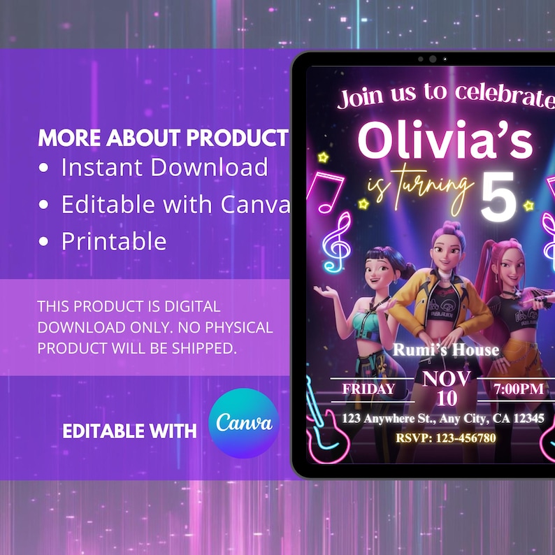Kpop Demon Hunters Birthday Invitation Editable Canva Template