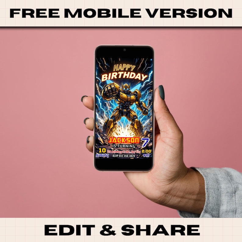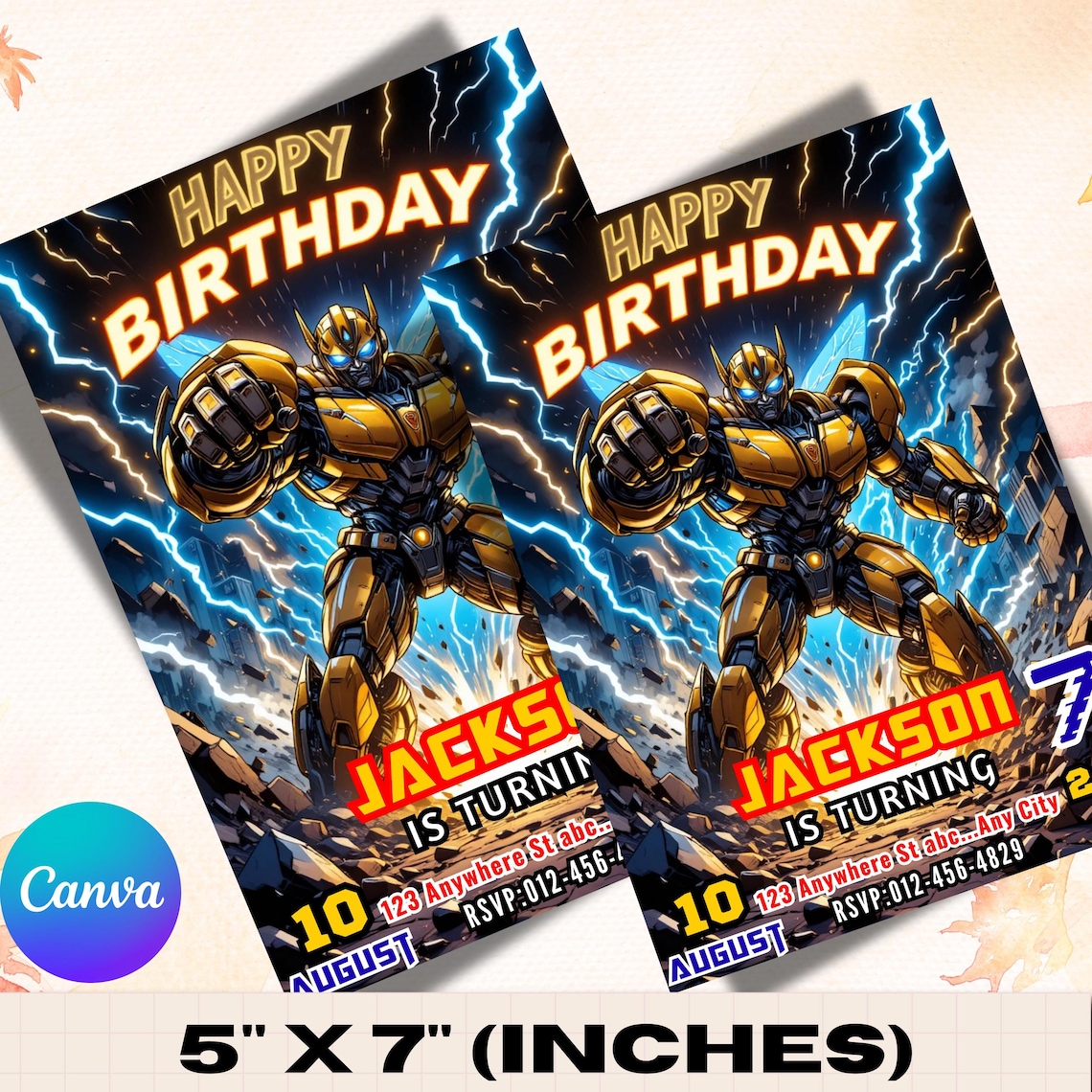 Editable Bumblebee Birthday Invitation Transformers Party Printable
