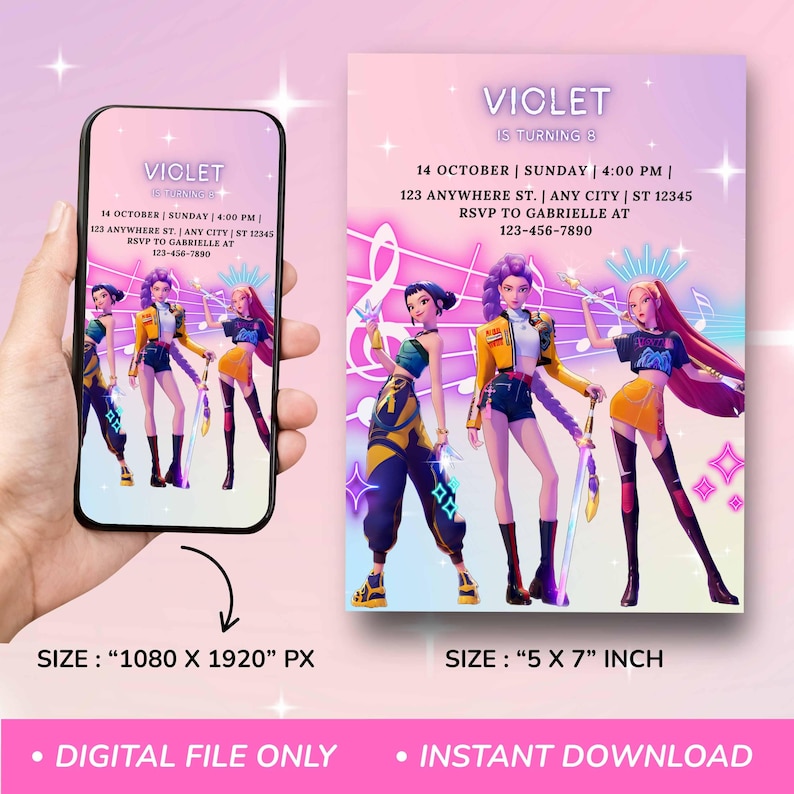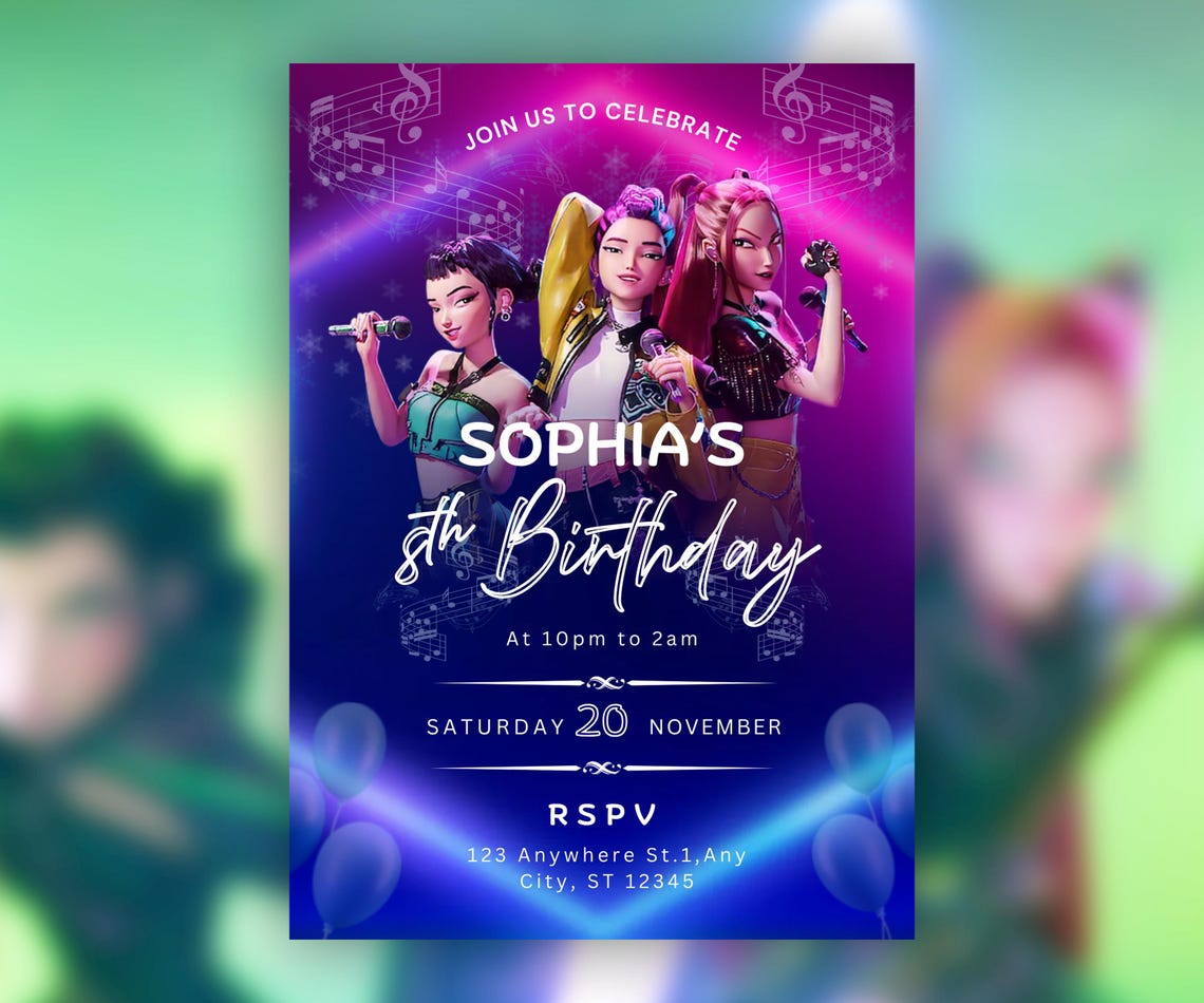 Kpop Demon Hunters Birthday Invitation Editable Anime K pop Party
