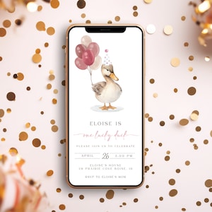 One Lucky Duck Birthday Text Invitation Template Editable Girl Duck