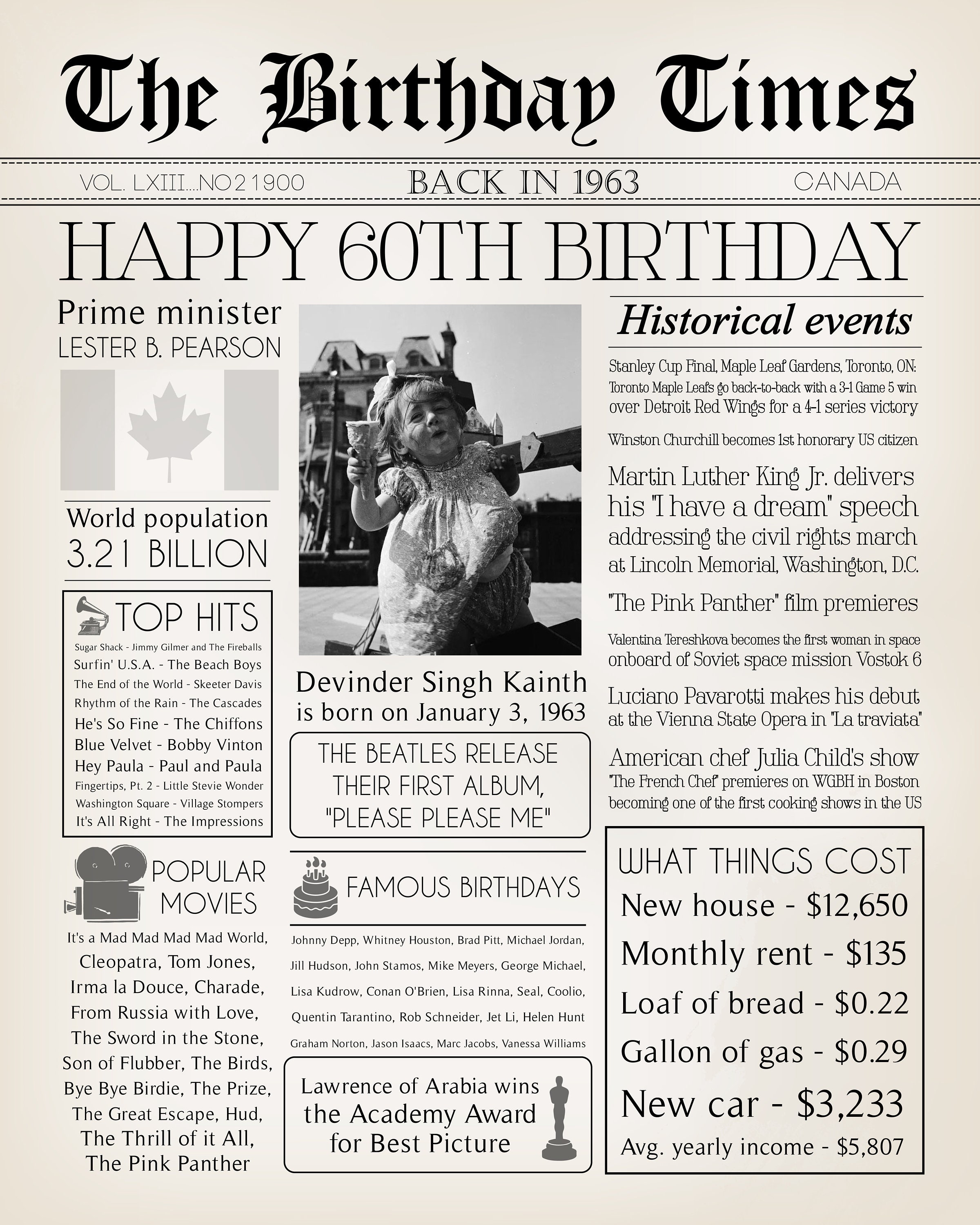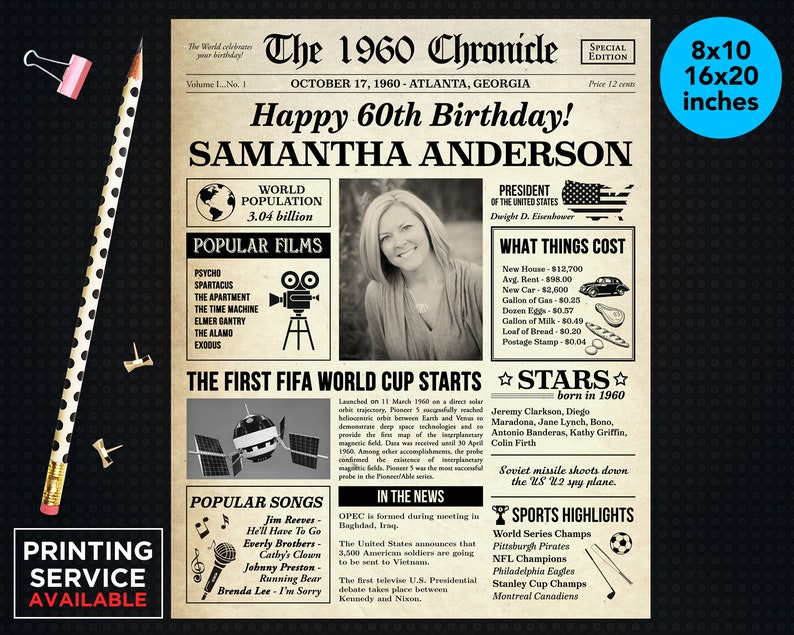 60th Birthday Newspaper Printed Template Poster Back In 1960 Etsy