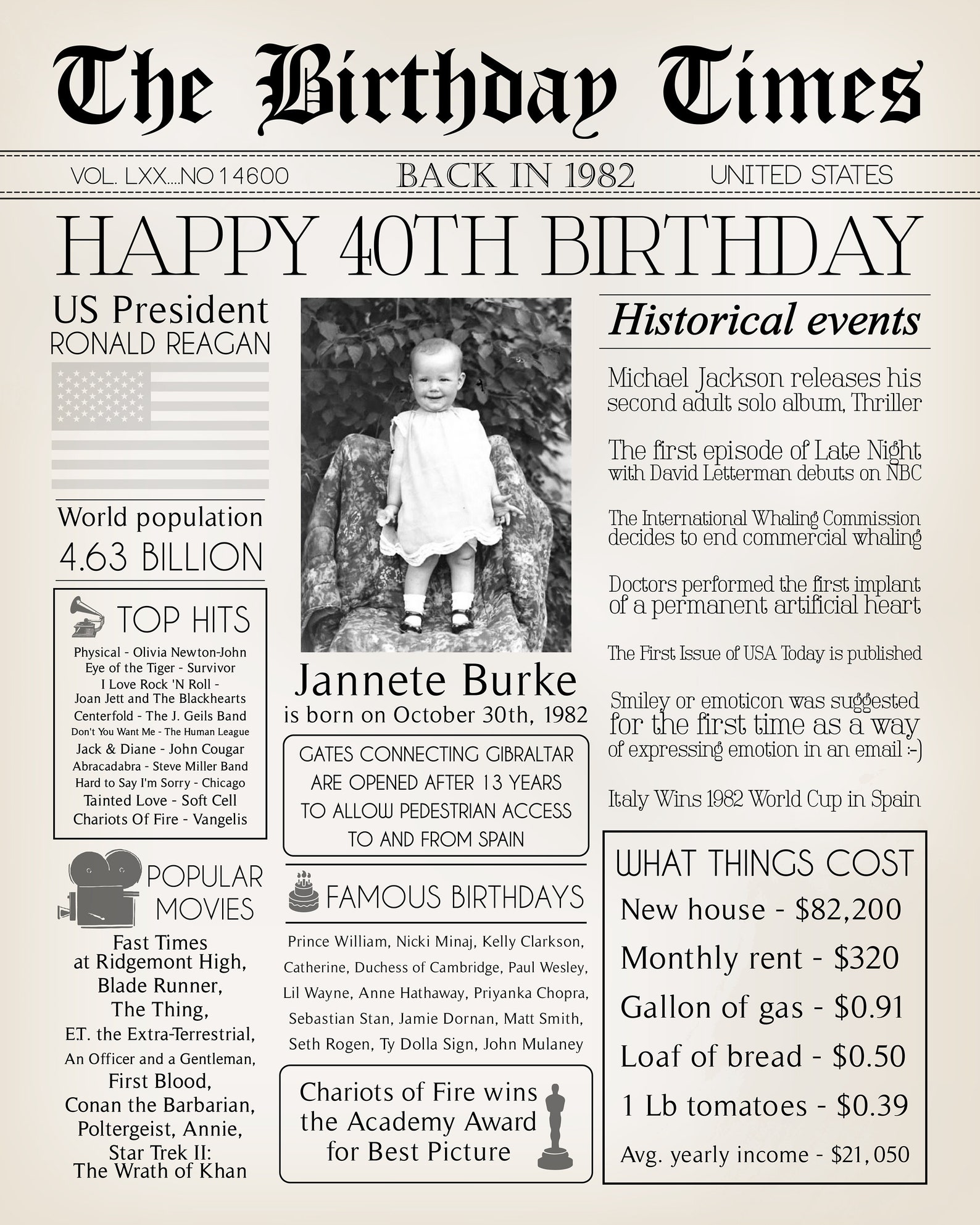 40th Birthday Newspaper Poster 40th Birthday Gift Back in Etsy