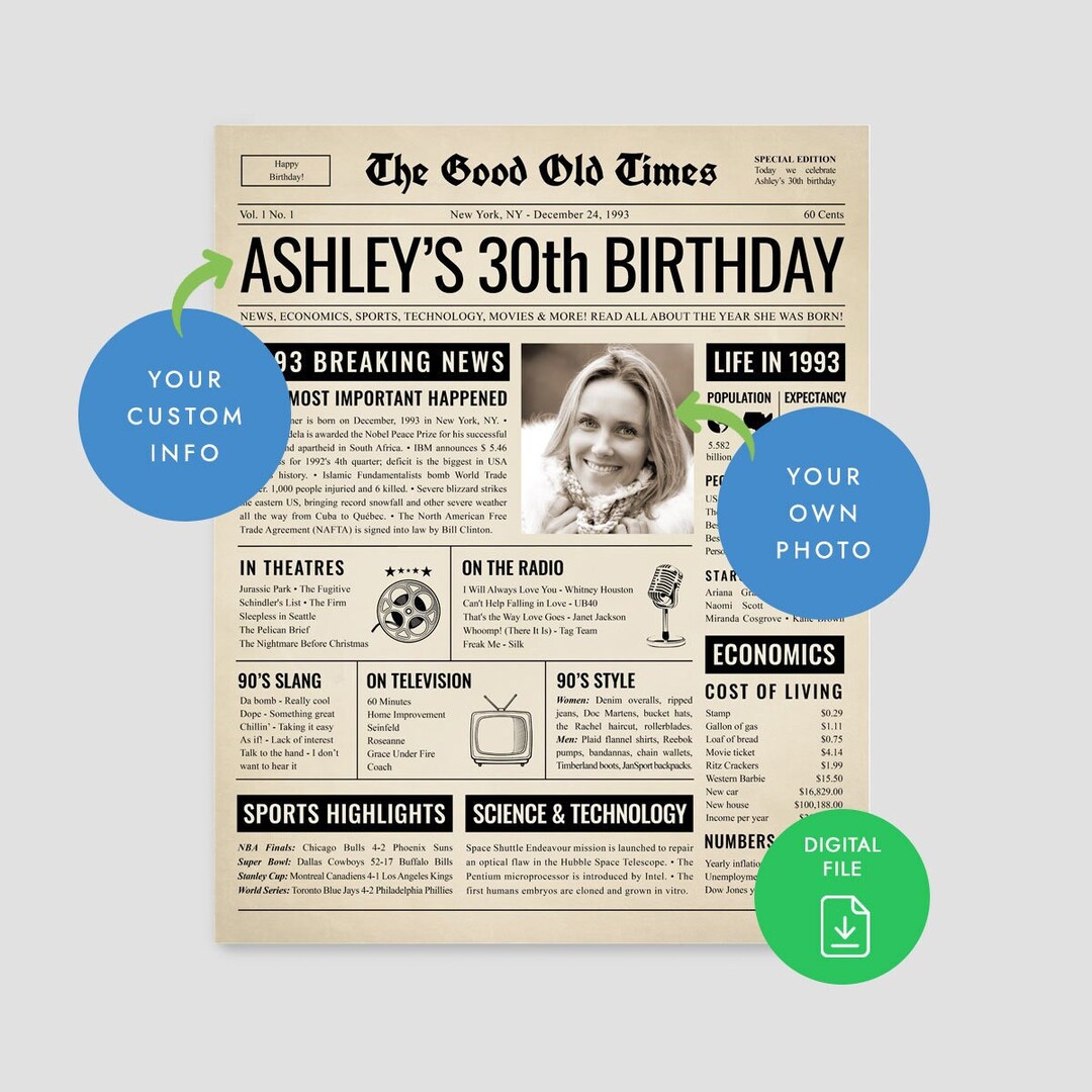 Birthday Newspaper Etsy