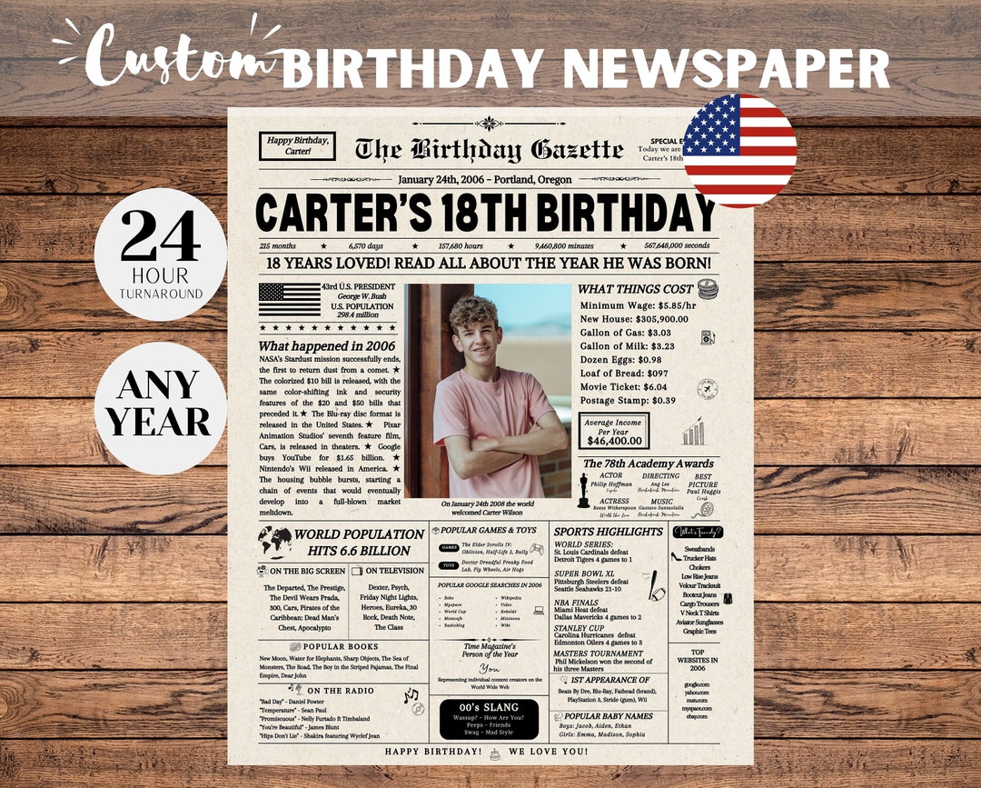 18th Birthday Newspaper 18th Birthday Decorations 18th Birthday Gift